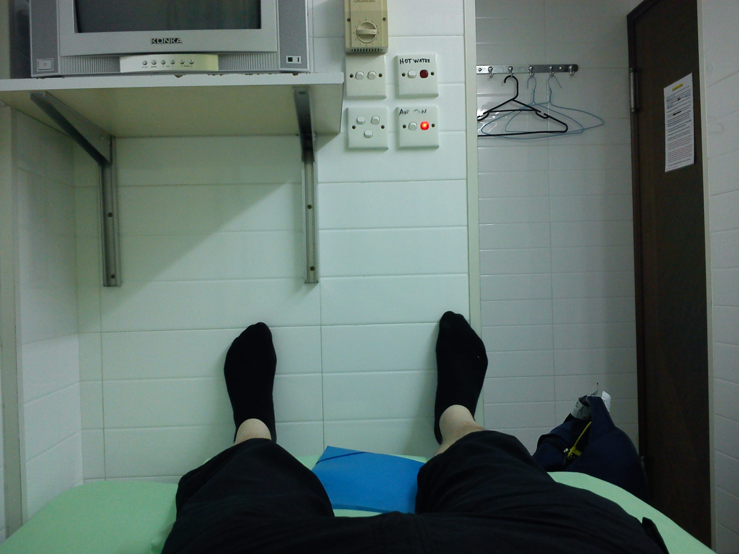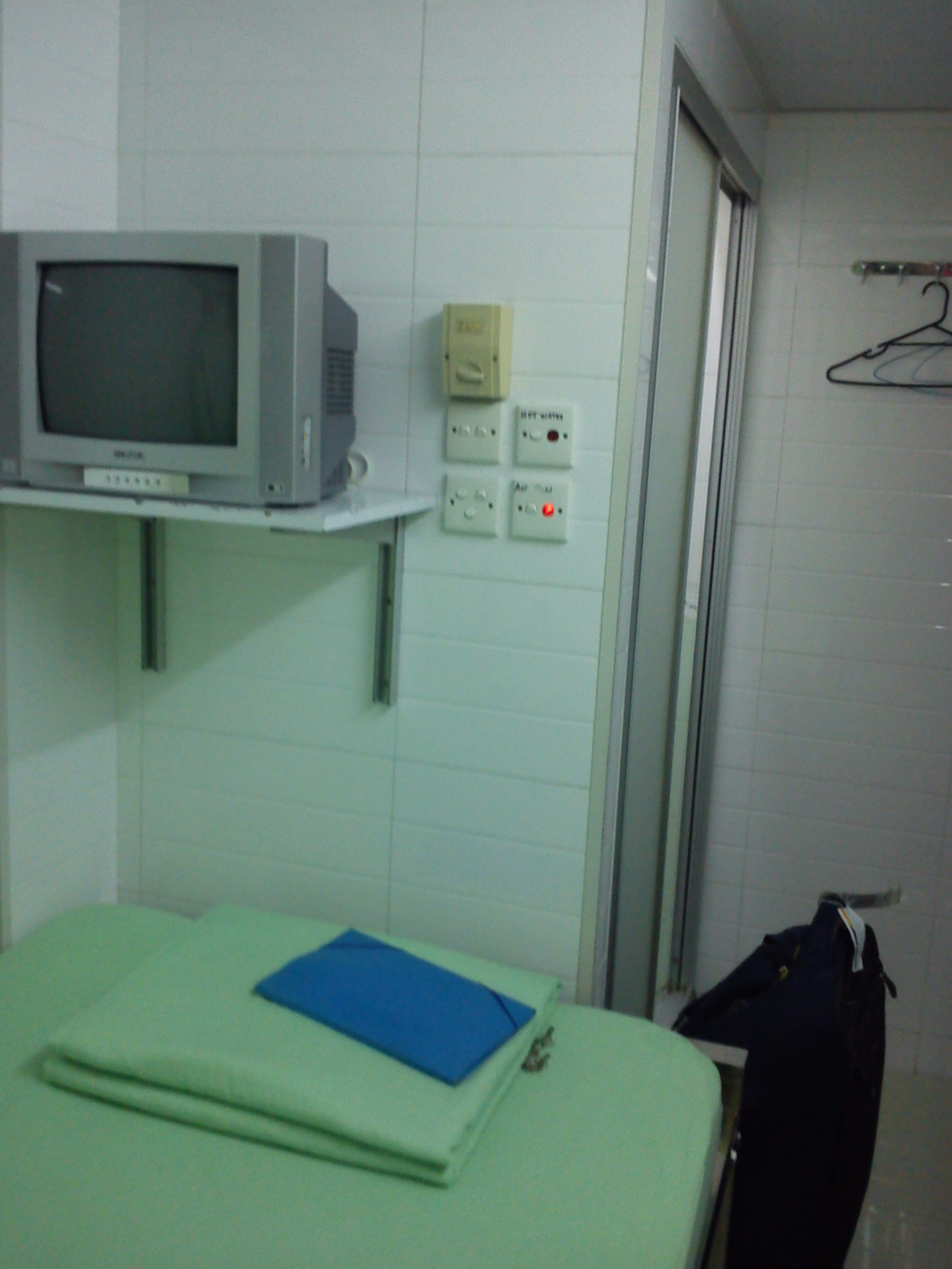 Sängen upptar det mesta av platsen, men den är bara 190 cm lång. Jag lovar 🙂 Det här är det i särklass dyraste rummet på hela resan, men det ingår i alla fall fri Internet. Vilket äventyr! Och snart kommer David…
