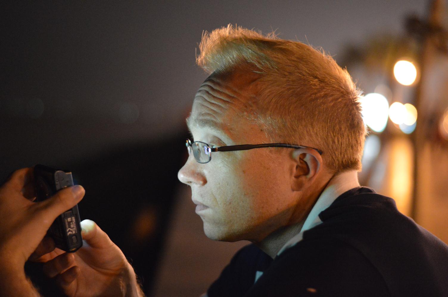 Mitt fina porträttobjektiv funkar fint i mörkret. Här ser vi t.ex. David när han funderar över bilderna han tagit under dagen.