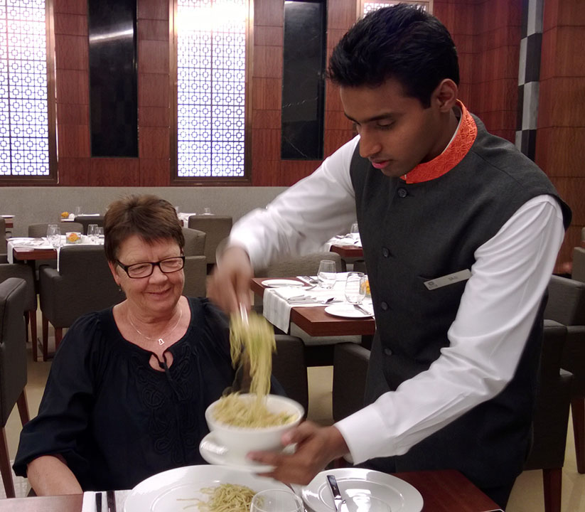 Idag blev det middag på hotellet. Vi verkar vara i stort sett de enda gästerna, så det är personlig service på bästa sätt.