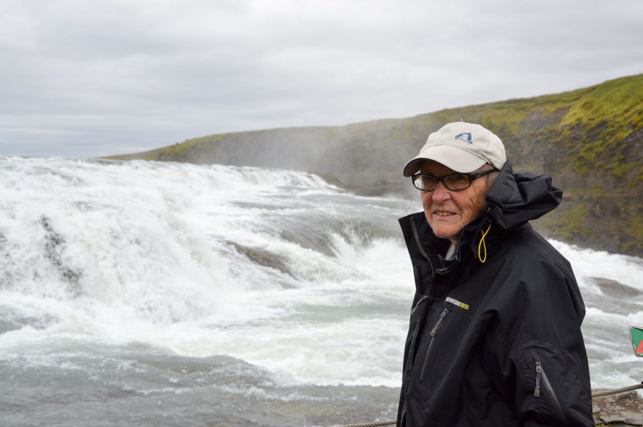Det var rätt långt att gå och riktigt knepigt dessutom, men mamman kom fram och kunde njuta av fallet på nära håll.