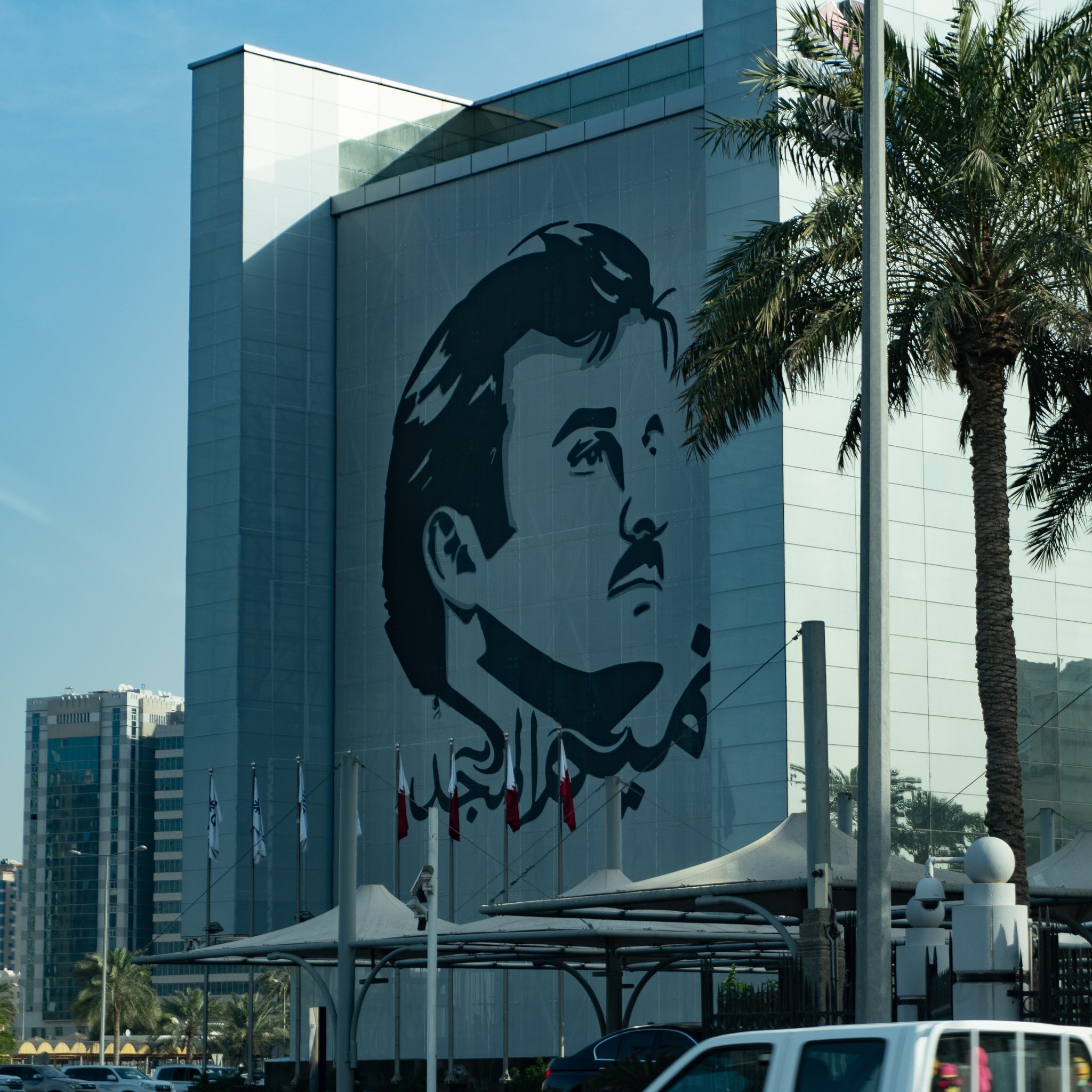 Jag tror Sverige skulle vara bättre om vi hade gigantiska stiliserade porträtt av Stefan Löfven överallt. Det här är Qatars president. Och han finns ÖVERALLT…