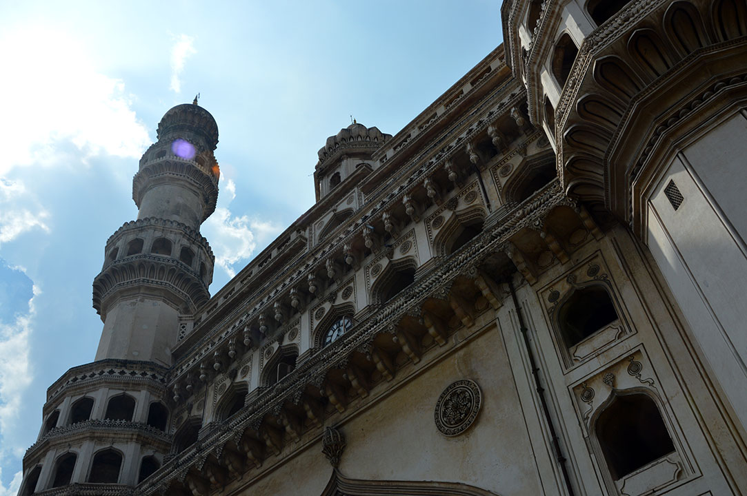 I trängseln runt Charminahr tog jag den här bilden av en av minareterna. Lite arty sådär på snedden med solen och molnen i bakgrunden.