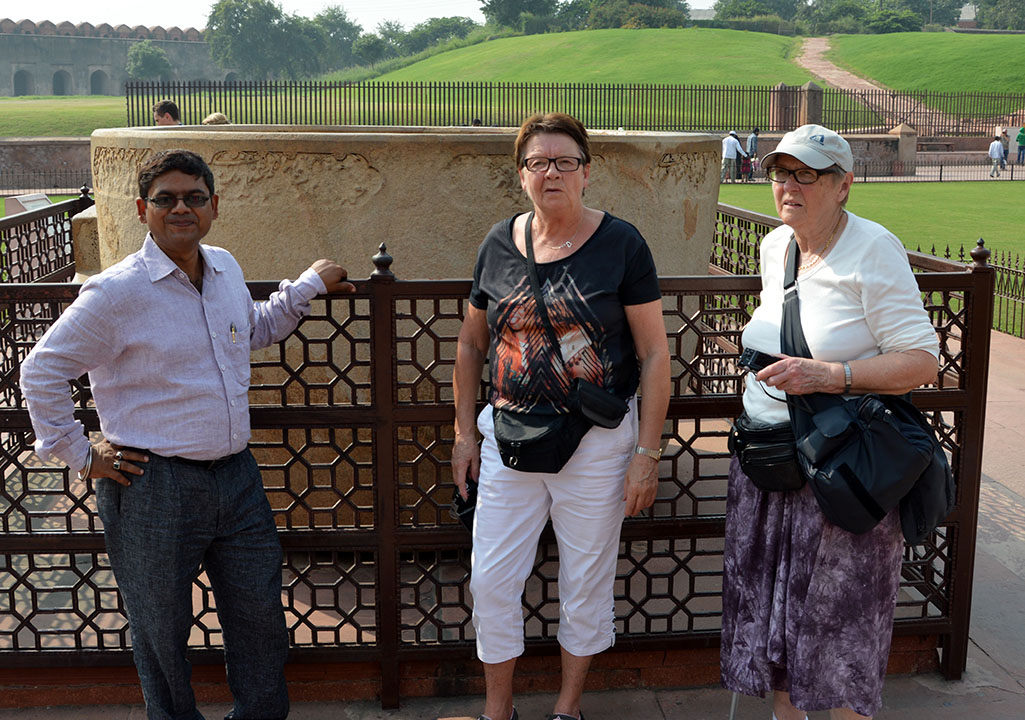 Den här ”grytan” är egentligen en badtunna uthuggen ur ett stort block av gul sandsten. Vi tvivlar lite på att den verkligen stod här mitt på gården när den användes och misstänker att den har flyttats ut från palatset.