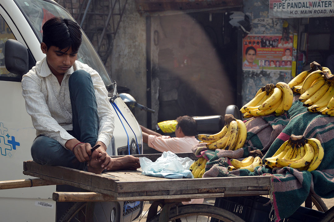 Vid sidan av vägen satt en kille och sålde bananer. Och rensade tånaglarna med en kniv. Jag hoppas han inte skär bananerna med samma kniv, men jag förutsätter att han gör det.