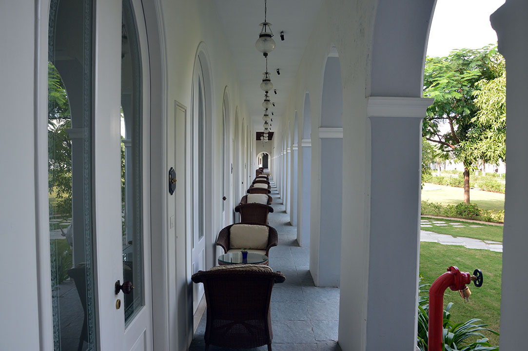 De billigaste rummen på Taj Falaknuma kostar ungefär 1500kr per natt och ligger i anslutning till trädgården. Jag vet inte om det är olika pris på de som ligger här på första våningen och de som ligger en våning upp, men de kallas i alla fall Deluxe-rum.