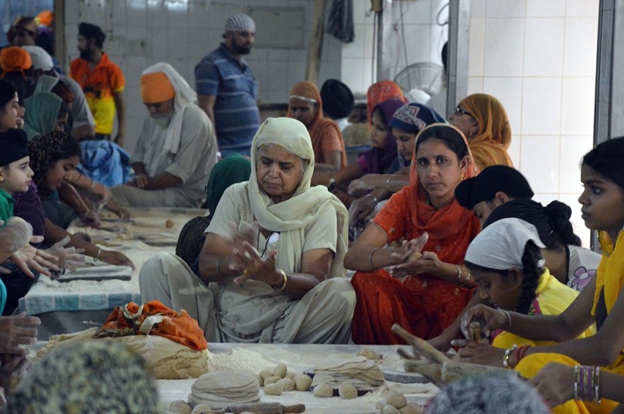 Här sitter kvinnor och barn och gör chapatta, ett sorts tunnbröd som man får till lunchen idag.
