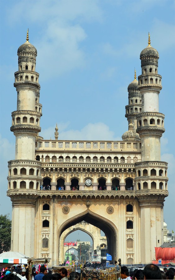 Så här ser Charminahr ut rakt framifrån. Just i den här bilden kan man dessutom se två andra portar i bakgrunden. De valven är också pampiga, men de försvinner lätt i trafiken och trängseln.