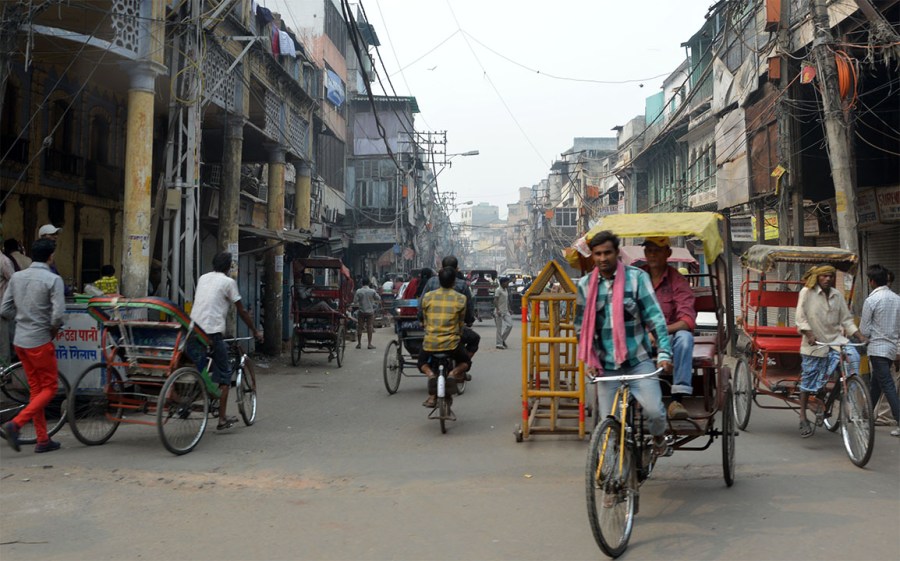 Det här är ingen typisk gata i Old Delhi. Den är alldeles för bred. Men det var lite coolt med alla cykelrikshor.