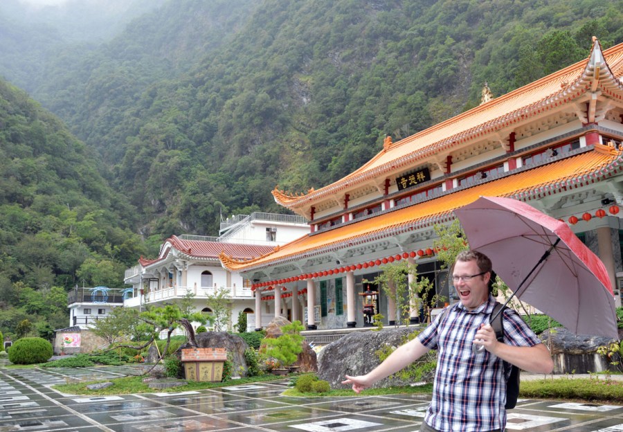 Har man klättrat ända upp till toppen för att titta på ett tempel, så måste man ju ta en bild också. Och ja, det regnar. Ganska mycket.