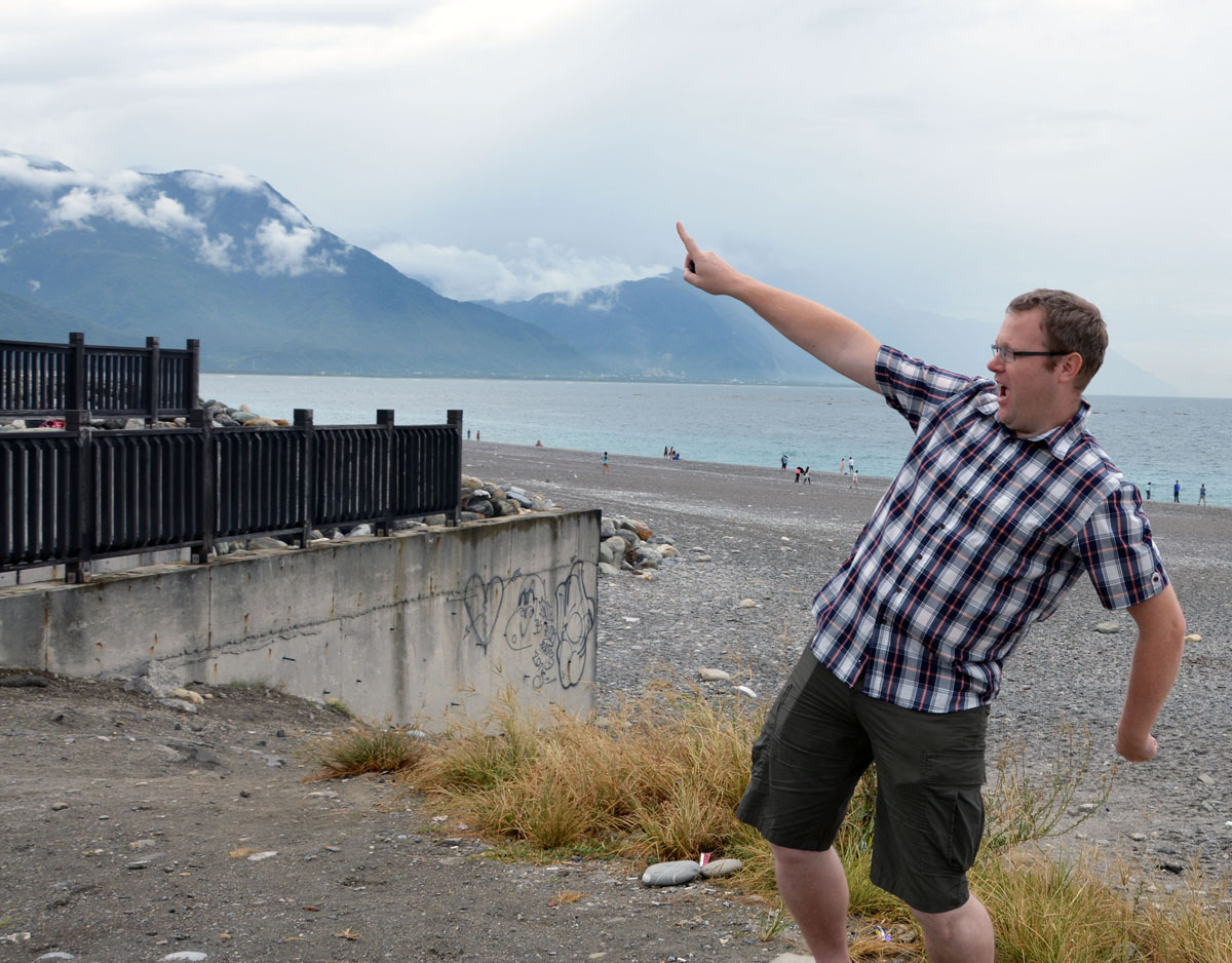 Här står jag vid Stilla havet och bevisar ännu en gång att en bra pose räddar vilken bild som helst. Jag pekar på molnen, förresten.