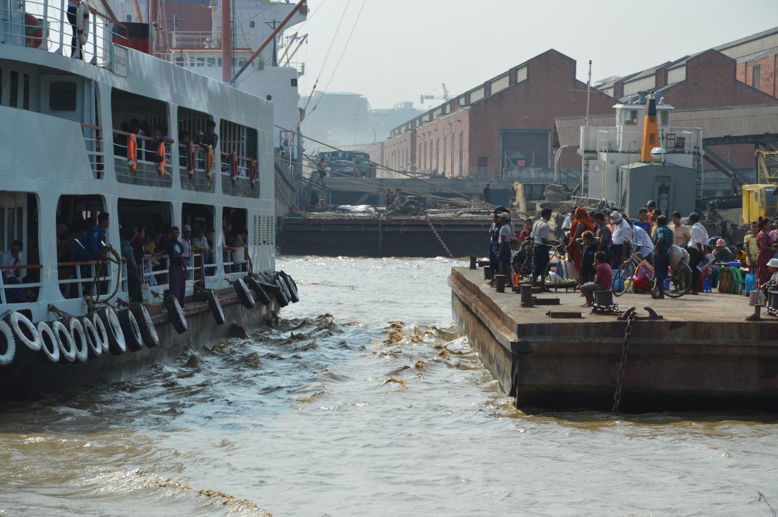 Den lokala färjan över floden lägger till vid kajen. Vår guide talade om att många turister tar en tur med färjan till andra sidan och tillbaks. Jaha, sa vi. Vår guide har ett väldigt kvinnligt sätt att kommunicera och det funkar inte riktigt på två så inbitna ungkarlar…