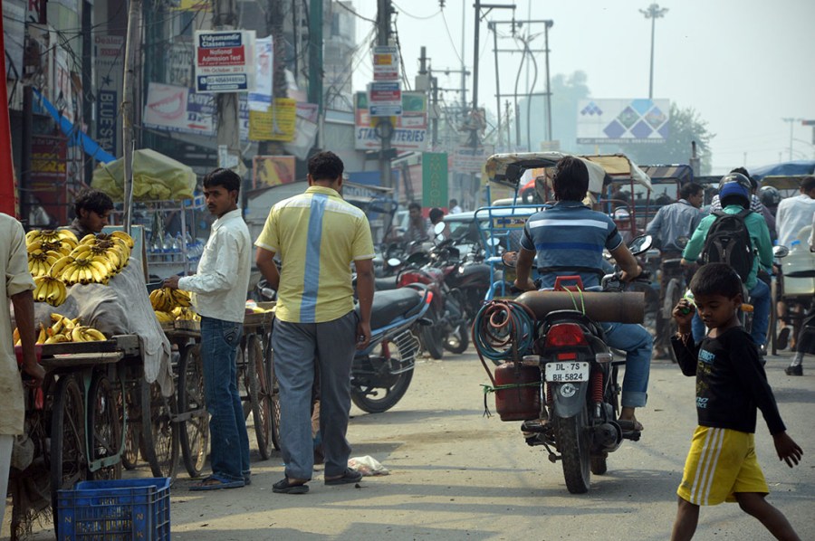 De två första timmarna av resan till Agra gick genom Delhi. Av någon anledning började vi resan söder ut genom att åka åt nordost, genom en ganska vältrafikerad del av huvudstaden. Jag hade trott att vi skulle åka söderut och runda stan innan vi anslöt till den stora motorvägen till Agra, men chauffören ville annorlunda. Lite oklart varför.