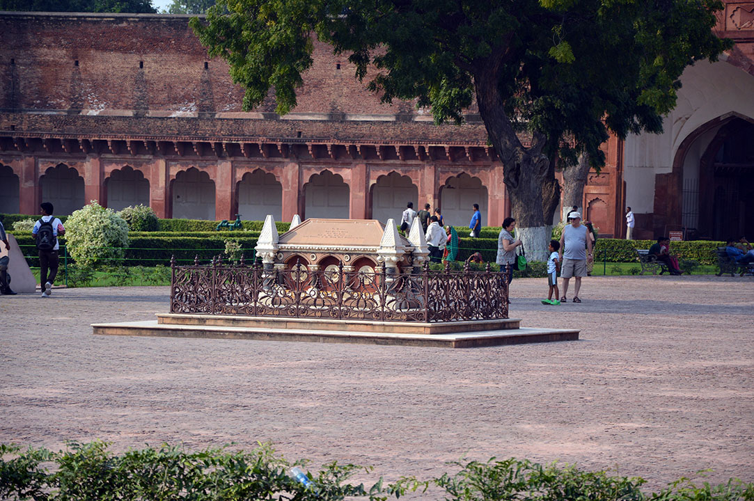 Här ligger engelsmannen som var chef för den här delen av Indien runt 1860 begravd. Just som han dog (av kolera) anföll hinduerna och intog fortet, så han kunde inte skeppas hem till England. Alltså begravdes han här. Revolutionärerna tyckte att det var ju inte hans fel att han blev nedgrävd här, så de lät honom ligga kvar.