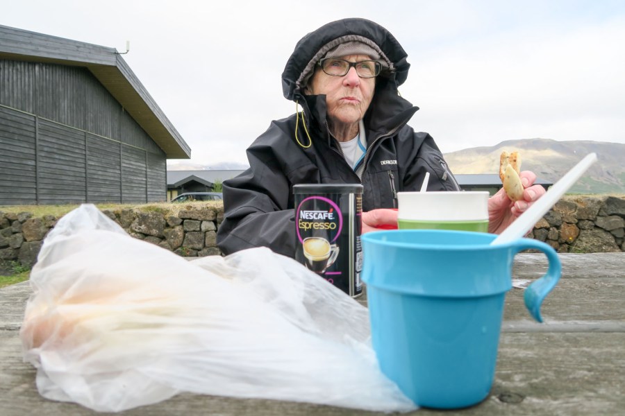 Här äter vi lunch (soppa och bröd) efter att gått Thingvallir runt. Friluftsliv!
