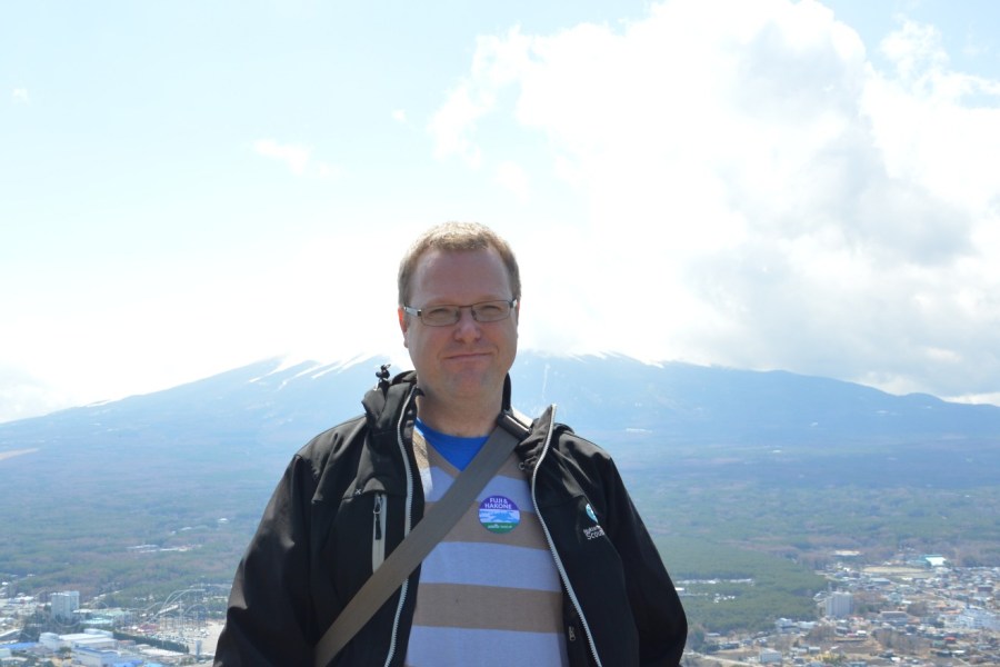 Här står jag på toppen av Kich-kichi med toppen av Fuji-san i bakgrunden.