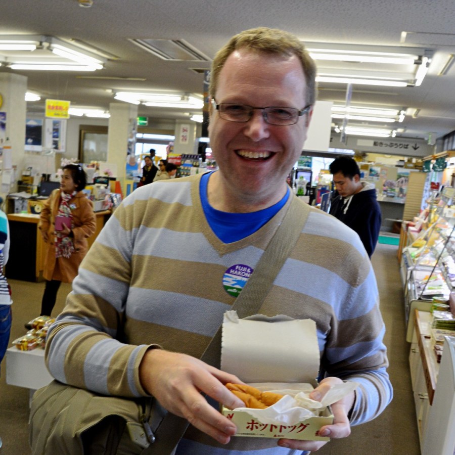 Så här lycklig kan man bli över två ynkligt små korvar.