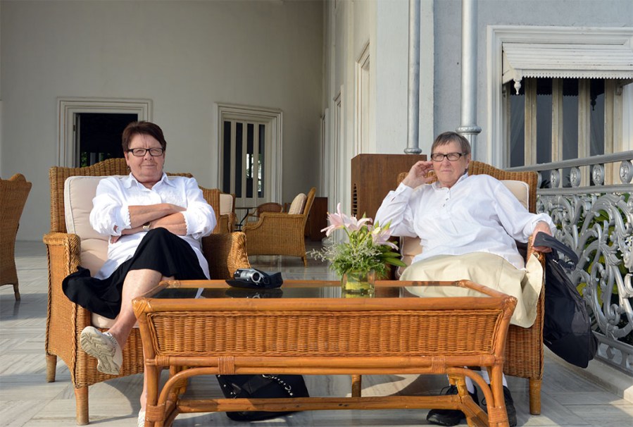 Efter lunchen andas damerna ut på balkongen innan vi ger oss av hemåt igen. Ok, det var mest för att ta den här bilden, men i alla fall. Mamma hade glömt sin krycka så det var lite extra bökigt att gå igenom den långa trädgården.