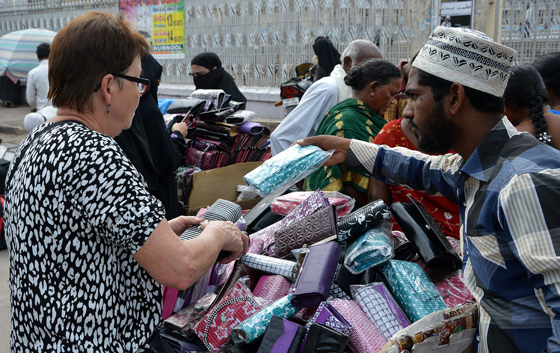Ann-Charlotte står och funderar över om hon skall köpa fler prylar. Det är ju så billigt.