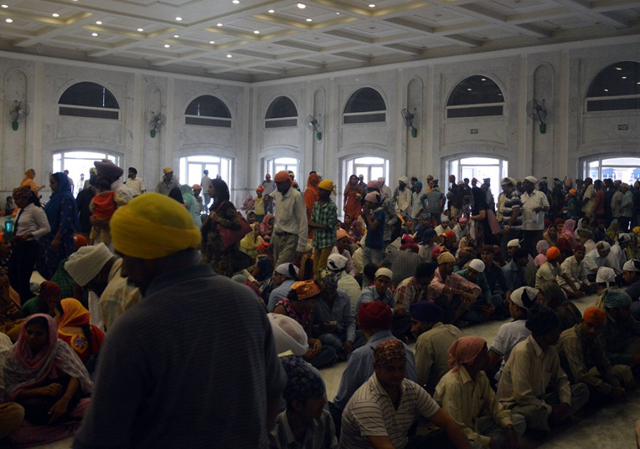Här ser vi några av de 50000 lyckliga som kommer få ta del av templets gratismat idag.