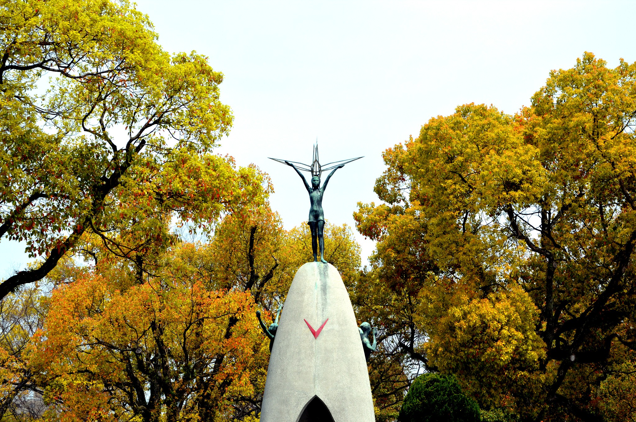 Det här är barnens fredsmonument. Precis som i London under kriget, så skickade man ut barnen på landet för att skydda dem från bomber. Många av de barnen hade ingen familj alls kvar när kriget var slut, eftersom i princip alla som var här när bomben föll dog omgående.