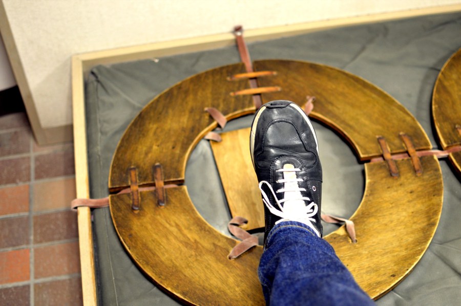 Ninjan hade såna här för att kunna gå i träskmarker. Lite som snöskor. Mina fötter får inte riktigt plats…