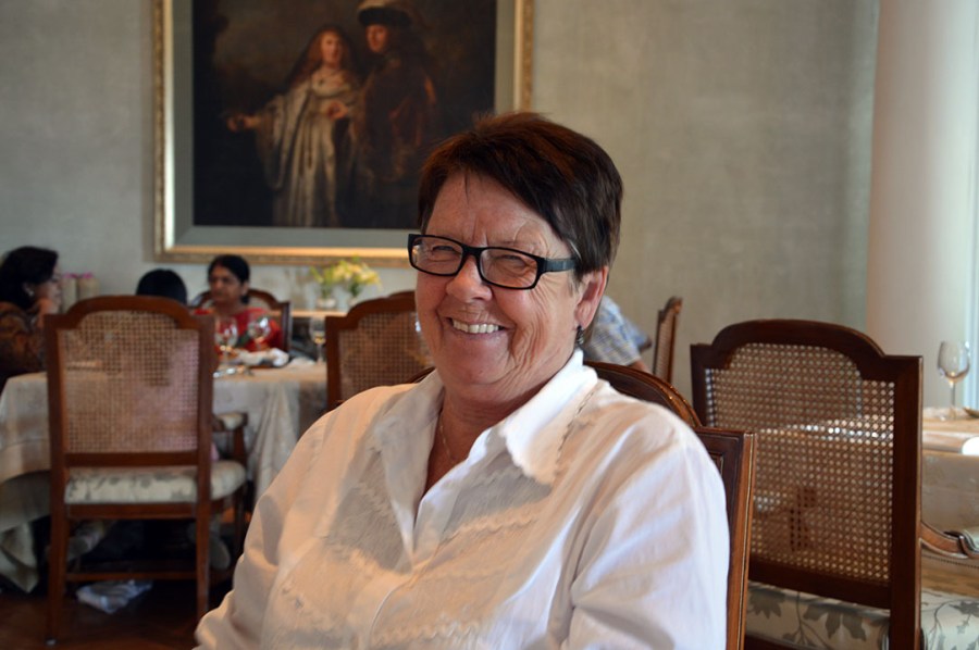 Såhär nöjd är Ann-Charlotte efter lunch på Celeste.
