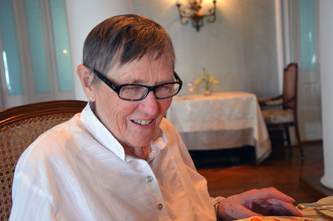 Och så här nöjd är mamma efter lunch på restaurang Celeste. Nu väntar vi bara på kaffet.