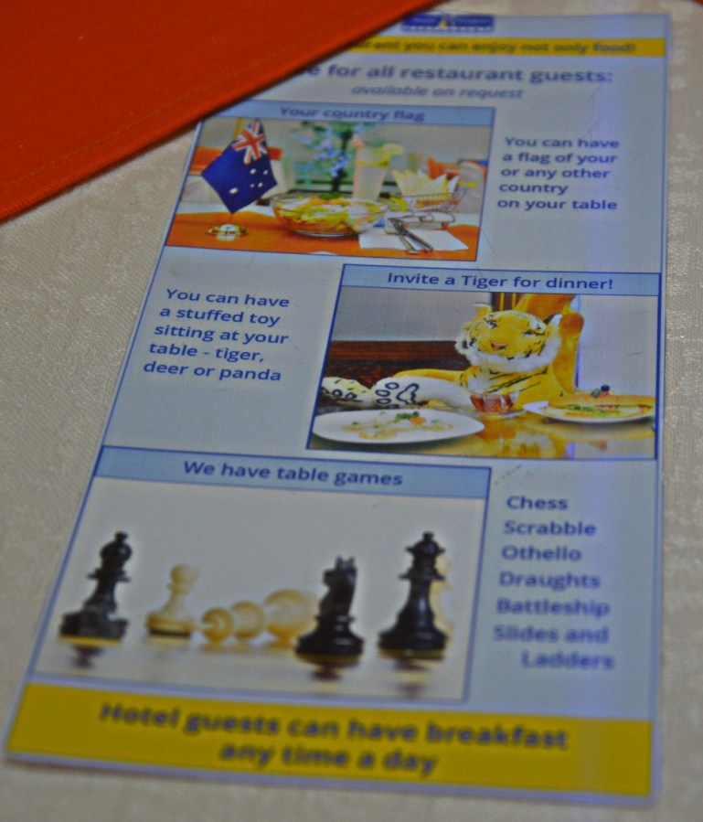 Om man känner sig ensam kan man beställa in mjukisdjur som sällskap till måltiden. Skulle varit här på min födelsedag, som jag hade tänkt.
