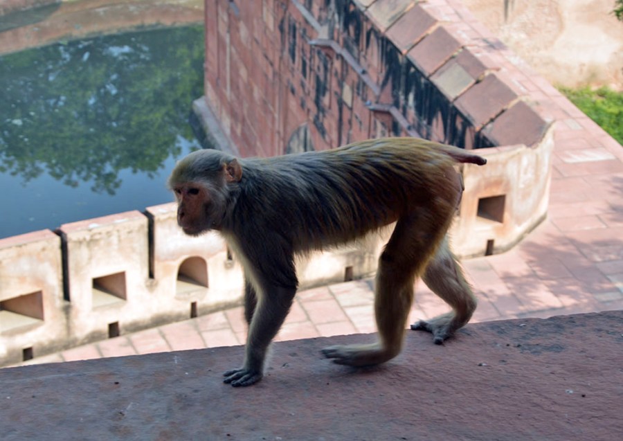 Det finns apor i Indien. Här är en som är ute och promenerar.
