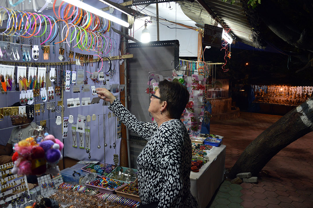 Här ser vi Ann-Charlotte i hennes naturliga miljö. Massor av saker hon inte behöver och det är ännu billigare än i Ullared. Tyvärr är hennes reskamrater inte riktigt lika intresserade av att köpa örhängen, bangles, sjalar, dockor, tofflor, dörrmattor och allt vad det var, så hon fick inte riktigt leva ut sina köplustar.