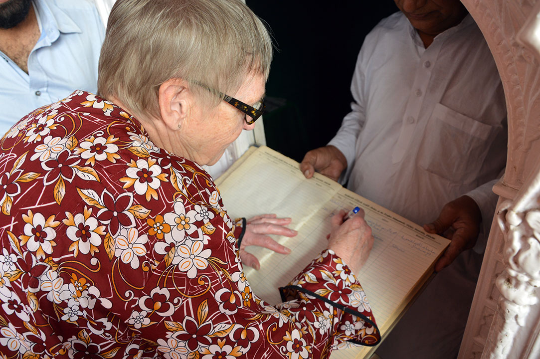 I ena hörnet på moskén fanns ett litet vitt hus. Därinne satt en liten gubbe som kunde visa upp de tre relikerna efter profeten Mohammed som finns i moskén: ett skäggstrå, ett fotavtryck och några sidor i koranen. Vi blev så imponerade så vi skrev in oss i gästboken direkt.