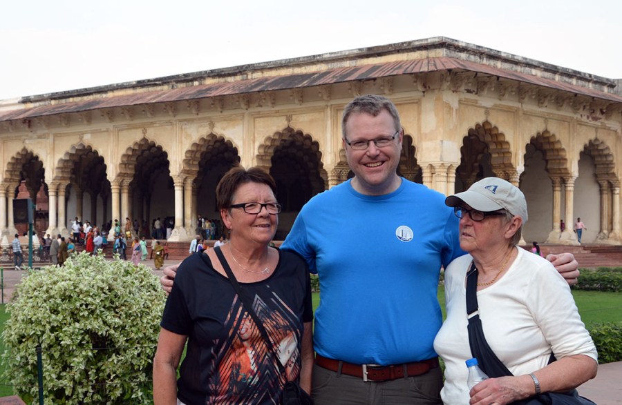 Här är vi trötta, svettiga och varma efter att ha travat omkring först runt Taj Mahal och sedan på Agra Fort. Dags för en lutare på hotellet? Jajjamensan!