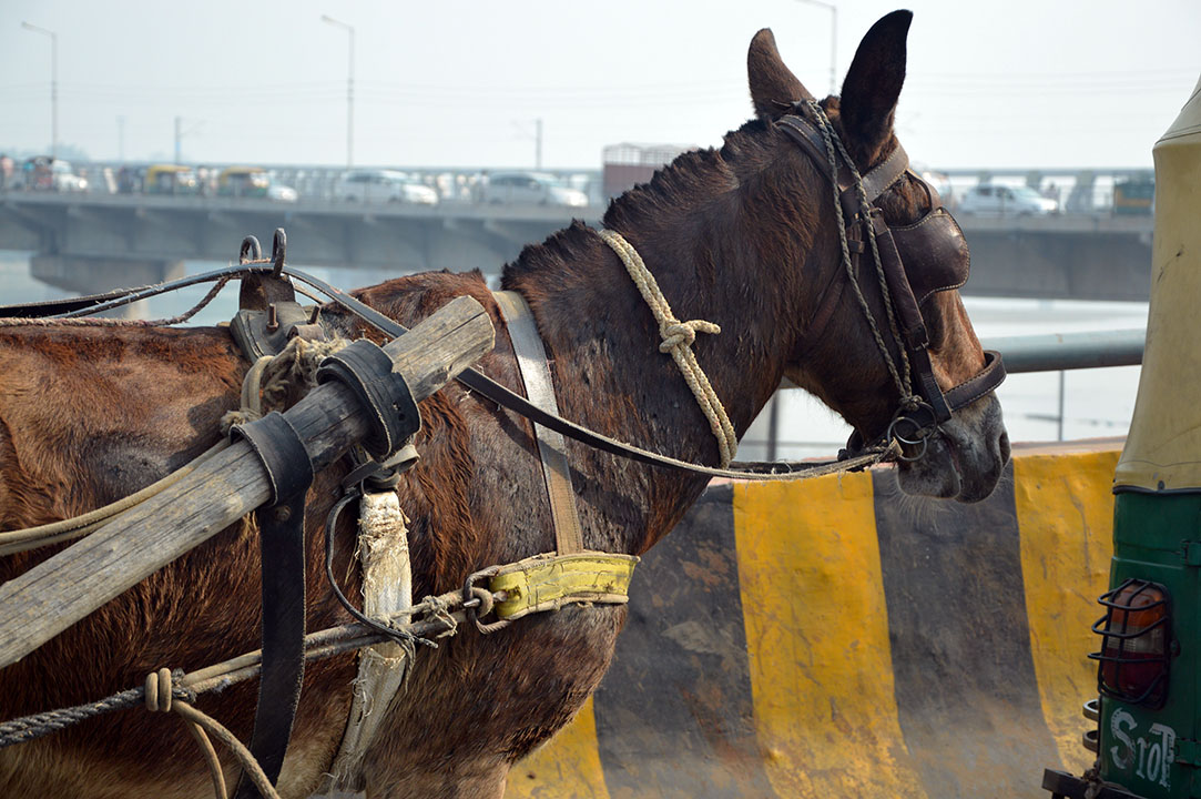 Trafik i Indien är en salig blandning av fordon från de senaste 2000 åren. Här har vi en stackare som förmodligen hellre hade varit någon annanstans.