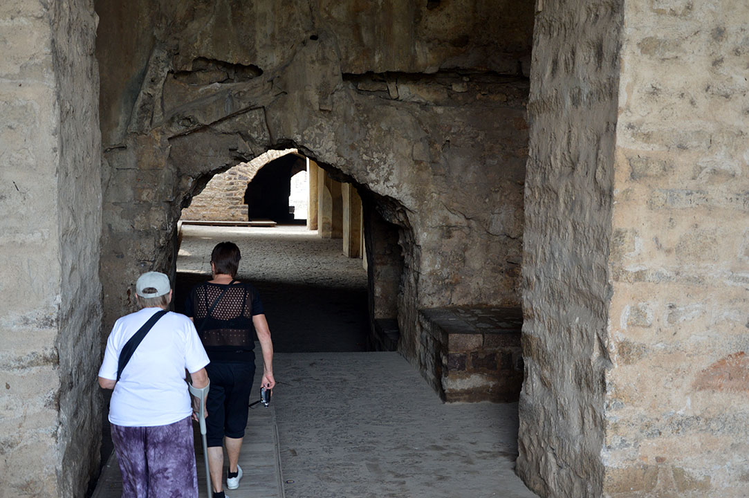 De nedre delarna av Golkonda Fort byggdes på 1500-talet av Qutb Shah-dynastin (samma gubbar som gjorde gravarna som vi besökte dag 8). Det känns mer som palats än som fort, med stora salar och öppen planlösning. Till höger hörs pipet från ett antal tusen fladdermöss, men damerna är gamla nog att slippa höra sådant.