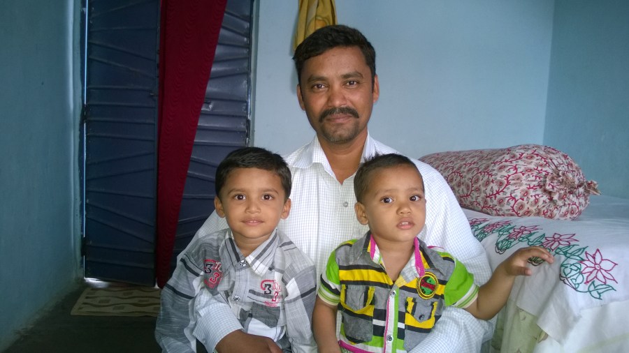 Här är Azmath med sina två äldre söner. Den yngste sover i det andra huset.